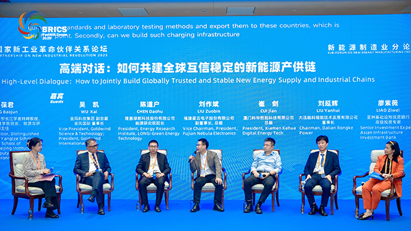 在分論壇的高端對話環(huán)節(jié),星云股份副董事長兼總裁劉作斌與行業(yè)企業(yè)、專家學(xué)者、機(jī)構(gòu)代表等同臺分享。星云股份近年來積極響應(yīng)金磚合作倡議,拓展包括印度在內(nèi)的金磚國家市場,并通過領(lǐng)先的鋰電池檢測產(chǎn)品與服務(wù)、電池智能制造解決方案、充檢一體設(shè)備等,持續(xù)為金磚國家新能源產(chǎn)業(yè)鏈發(fā)展提供關(guān)鍵技術(shù)支持。劉作斌總裁主張通過建立全球統(tǒng)一的技術(shù)標(biāo)準(zhǔn)與認(rèn)證互認(rèn)體系來共建互信穩(wěn)定的新能源產(chǎn)供鏈,并通過將高精度、高可靠性的檢測數(shù)據(jù)作為行業(yè)的“通用語言”,實(shí)現(xiàn)從“電芯→模組→PACK”全生命周期的質(zhì)量可追溯、可驗證,打破不同國家之間在新能源領(lǐng)域的技術(shù)壁壘與信任隔閡,讓電池的安全與性能成為全球市場互認(rèn)的“硬通貨”,最終推動新能源產(chǎn)業(yè)在透明、協(xié)作、互信的基礎(chǔ)上實(shí)現(xiàn)高質(zhì)量可持續(xù)發(fā)展。